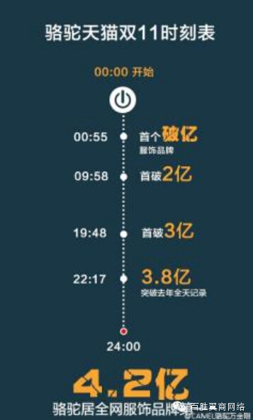 Top1是如何修炼而来的,独家揭秘骆驼双十一魔鬼细节2014年的天猫双十一已落幕,一天时间,571亿,让所有人惊叹。骆驼不负众望,以4.2亿的总销售额,在服饰大盘中脱颖而出,夺得冠军。这已经是骆驼第4次拿到这个头衔。